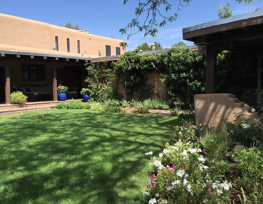 MUSEUM HILL NEIGHBORHOOD OASIS – Home and guest house on 2.4 acres in Museum Hill neighborhood with private well, panoramic views in all directions, beautiful yard and garden, hardwood floors, vigas, two fireplaces, two story home with second story portal,…