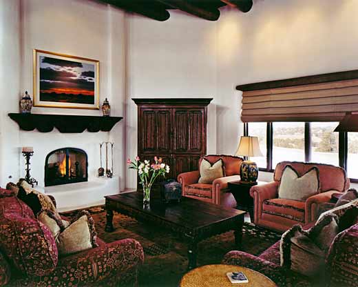 Offering elegant living opportunities of the highest magnitude, this extraordinary custom adobe estate overlooks the 18th hole of the Jack Nicklaus signature Sunrise course and offers mesmorizing views of both the Sangre de Cristo and Jemez Mountains. Designed and built by Roger Hunter and Associates, Santa Fe’s premier designer/builder and decorating firm delivering the best new ultra-luxury homes to the market, this 8,800 sq. ft.3 BR main home and 1,800 sq. ft. 1 BR guest house surround a phenomenal interior courtyard with beautiful gardens flanking a dramatic waterfall and pond. Additional features and amenities include elegant finish materials, a sensual integration of interior and exterior spaces, multi-faceted security, and luxurious privacy. For quality, size, price, and location, there is no equal or superior home available in the Santa Fe or Las Campanas market.