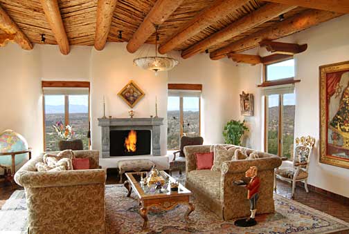Perched on top of the world above St. John’s College on Santa Fe’s Upper Eastside, this classic adobe masterpiece provides dichotomous views to the west overlooking Santa Fe and its lights at night with daily sunset views uninterrupted and unsurpassed and an eastern view into the pristine virginity of the natural world of the Santa Fe National Forest.